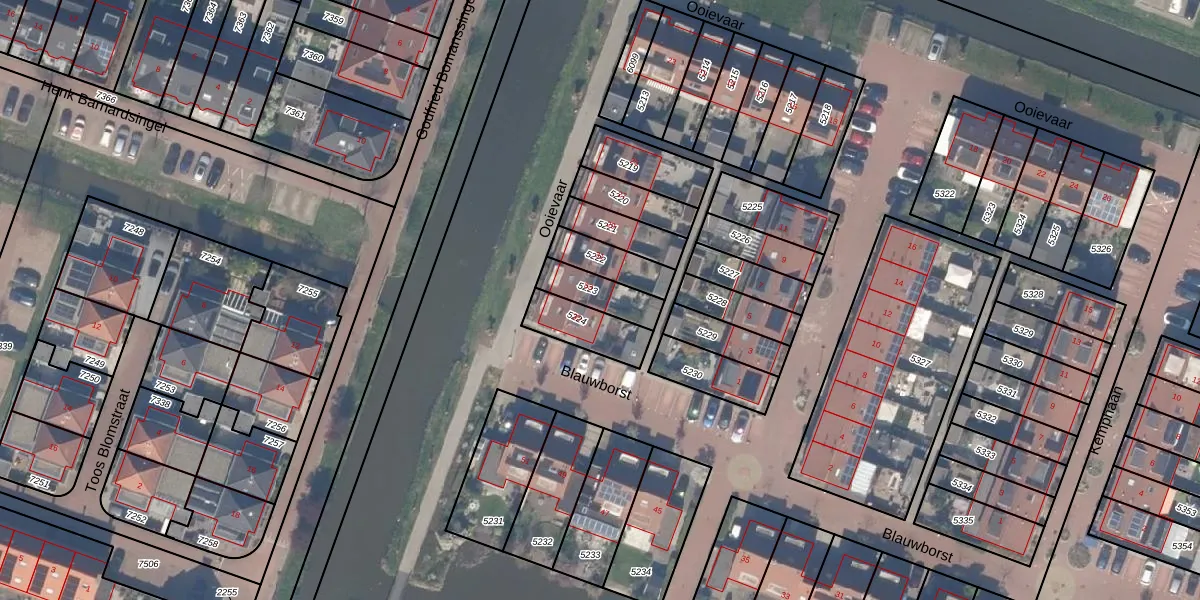 Gebruik de zoekbalk of klik op een perceel voor informatie over de adressen binnen dit perceel.