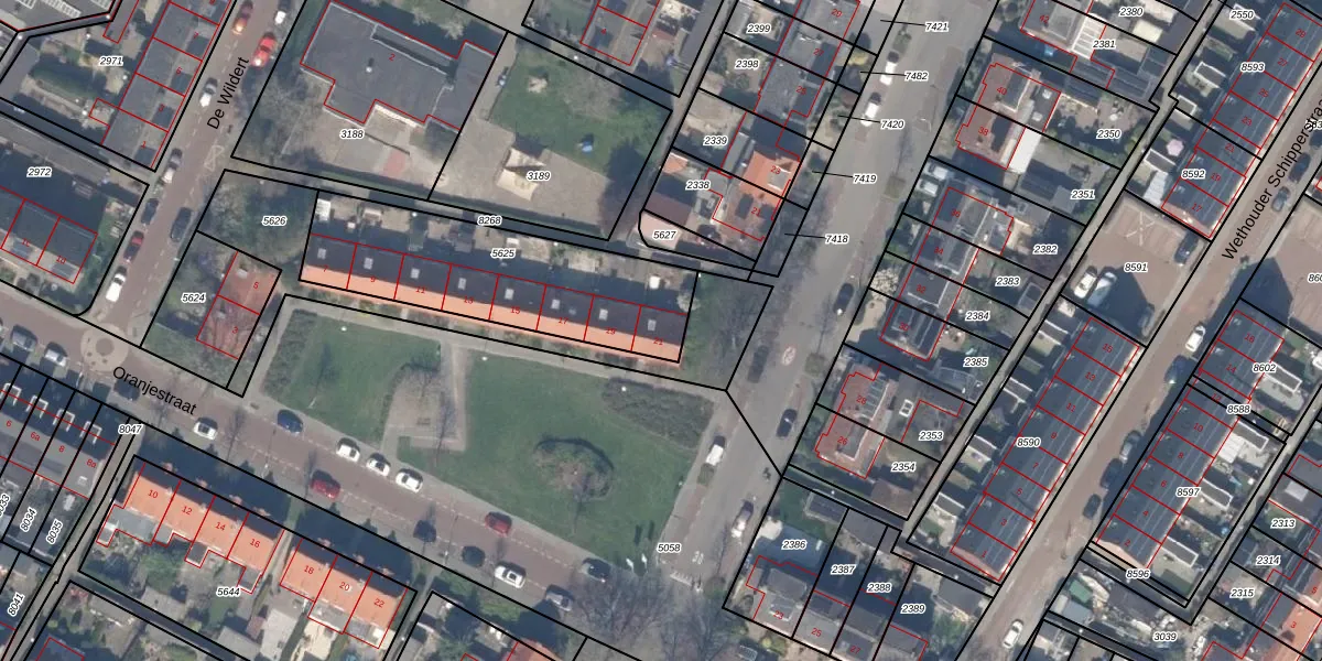 Het perceel waarop Oranjestraat 21 staat heeft een oppervlakte van 828 m². Dit is een groot perceel. De perceeloppervlakte wordt geregistreerd door het Kadaster. Gedetailleerde informatie over de maten van dit perceel kunt u vinden in het rapport Kadastrale kaart met maatvoering van Oranjestraat 21.