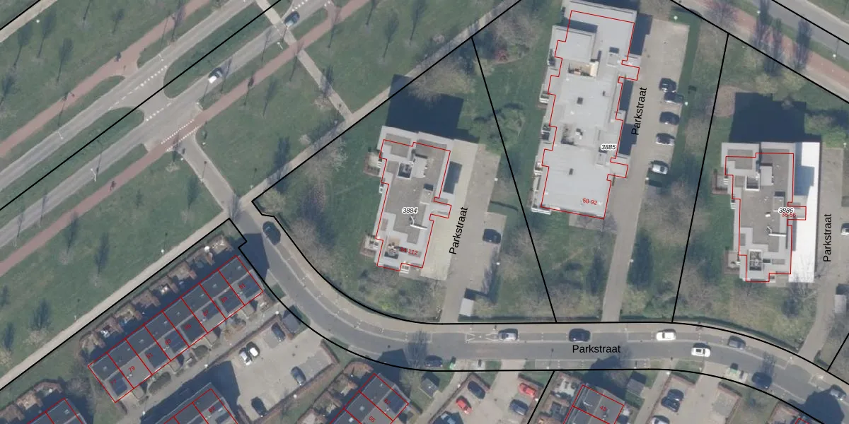 Het perceel waarop Parkstraat 102 staat heeft een oppervlakte van 2740 m². Dit is een zeer groot perceel. De perceeloppervlakte wordt geregistreerd door het Kadaster. Gedetailleerde informatie over de maten van dit perceel kunt u vinden in het rapport Kadastrale kaart met maatvoering van Parkstraat 102.