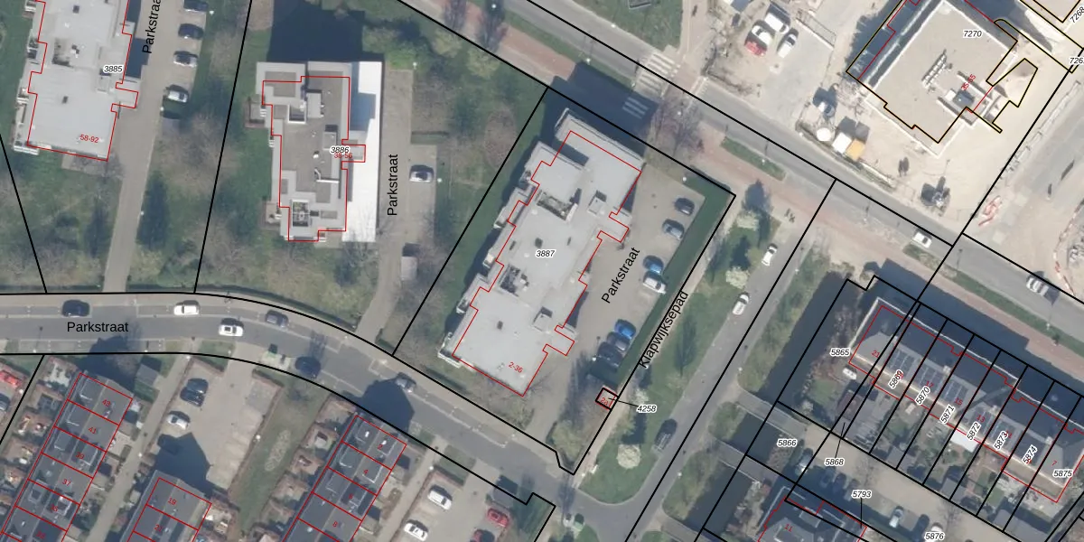 Het perceel waarop Parkstraat 22 staat heeft een oppervlakte van 2295 m². Dit is een zeer groot perceel. De perceeloppervlakte wordt geregistreerd door het Kadaster. Gedetailleerde informatie over de maten van dit perceel kunt u vinden in het rapport Kadastrale kaart met maatvoering van Parkstraat 22.
