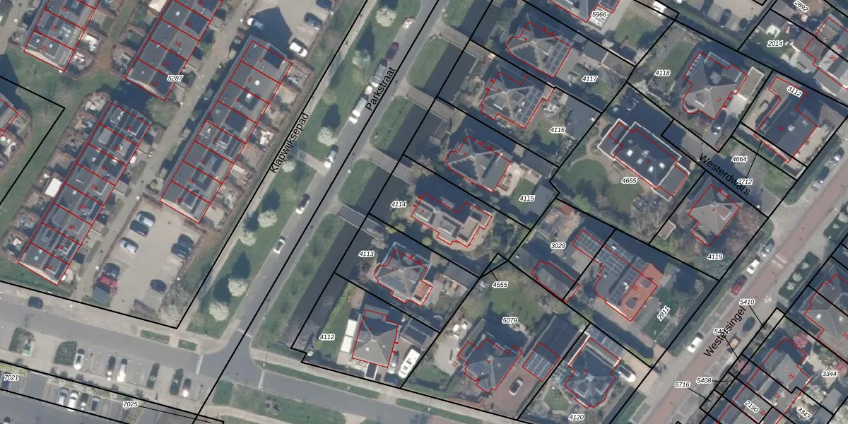 Gebruik de zoekbalk of klik op een perceel voor informatie over de adressen binnen dit perceel.