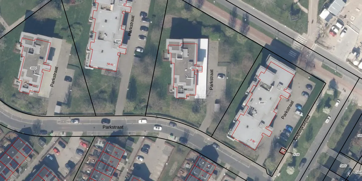 Het perceel waarop Parkstraat 38 staat heeft een oppervlakte van 2990 m². Dit is een zeer groot perceel. De perceeloppervlakte wordt geregistreerd door het Kadaster. Gedetailleerde informatie over de maten van dit perceel kunt u vinden in het rapport Kadastrale kaart met maatvoering van Parkstraat 38.