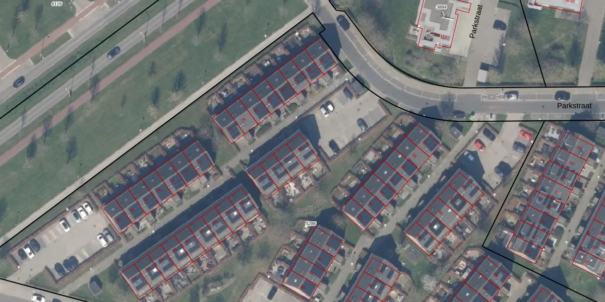 Het perceel waarop Parkstraat 69 staat heeft een oppervlakte van 1,4 ha. Dit is een zeer groot perceel. De perceeloppervlakte wordt geregistreerd door het Kadaster. Gedetailleerde informatie over de maten van dit perceel kunt u vinden in het rapport Kadastrale kaart met maatvoering van Parkstraat 69.