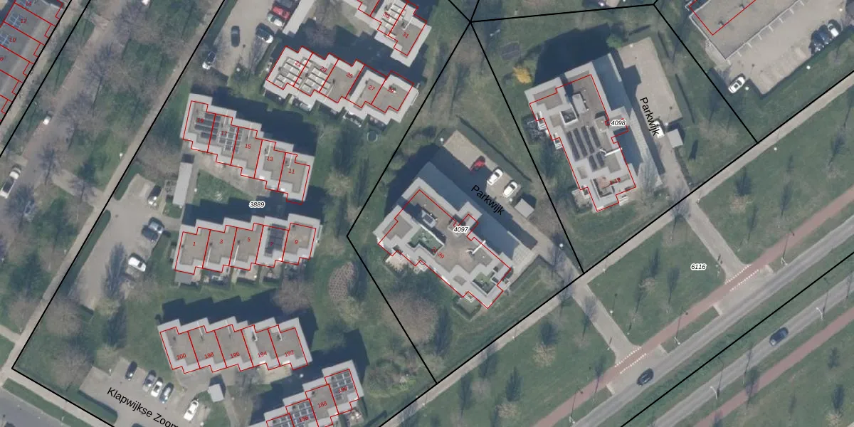 Het perceel waarop Parkwijk 37 staat heeft een oppervlakte van 2385 m². Dit is een zeer groot perceel. De perceeloppervlakte wordt geregistreerd door het Kadaster. Gedetailleerde informatie over de maten van dit perceel kunt u vinden in het rapport Kadastrale kaart met maatvoering van Parkwijk 37.