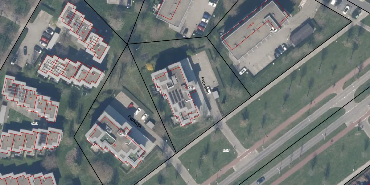 Het perceel waarop Parkwijk 9 staat heeft een oppervlakte van 2355 m². Dit is een zeer groot perceel. De perceeloppervlakte wordt geregistreerd door het Kadaster. Gedetailleerde informatie over de maten van dit perceel kunt u vinden in het rapport Kadastrale kaart met maatvoering van Parkwijk 9.