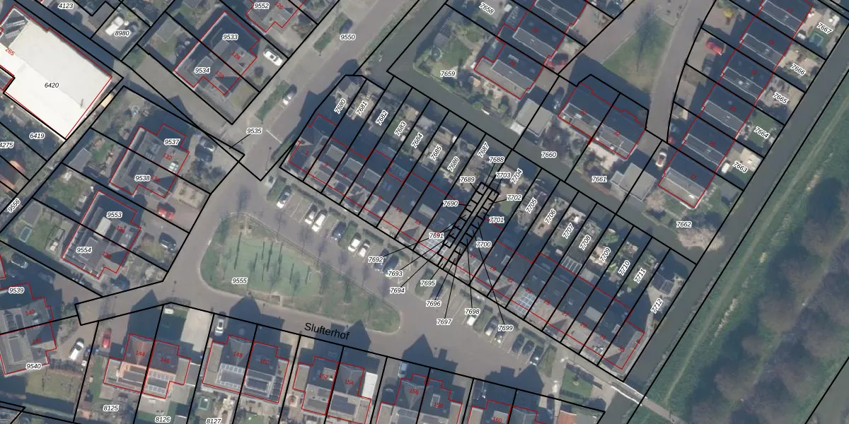 Het perceel waarop Slufterhof 13 staat heeft een oppervlakte van 166 m². Dit is een middelgroot perceel. De perceeloppervlakte wordt geregistreerd door het Kadaster. Gedetailleerde informatie over de maten van dit perceel kunt u vinden in het rapport Kadastrale kaart met maatvoering van Slufterhof 13.