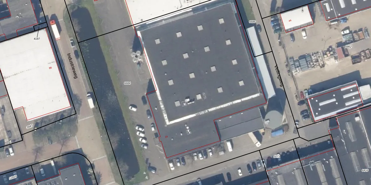 Het perceel waarop Veilingweg 24 staat heeft een oppervlakte van 8039 m². Dit is een zeer groot perceel. De perceeloppervlakte wordt geregistreerd door het Kadaster. Gedetailleerde informatie over de maten van dit perceel kunt u vinden in het rapport Kadastrale kaart met maatvoering van Veilingweg 24.