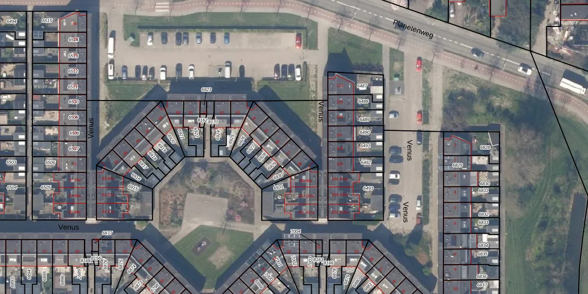 Het perceel waarop Venus 97 staat heeft een oppervlakte van 87 m². Dit is een klein perceel. De perceeloppervlakte wordt geregistreerd door het Kadaster. Gedetailleerde informatie over de maten van dit perceel kunt u vinden in het rapport Kadastrale kaart met maatvoering van Venus 97.