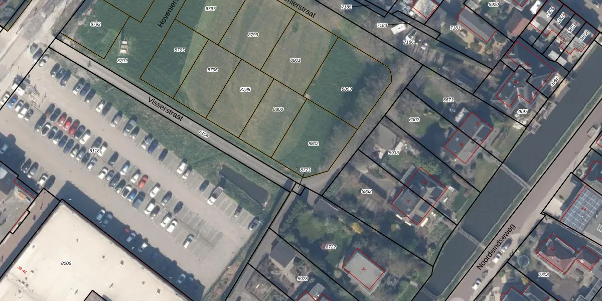 Het perceel waarop Visserstraat 9 staat heeft een oppervlakte van 431 m². Dit is een groot perceel. De perceeloppervlakte wordt geregistreerd door het Kadaster. Gedetailleerde informatie over de maten van dit perceel kunt u vinden in het rapport Kadastrale kaart met maatvoering van Visserstraat 9.