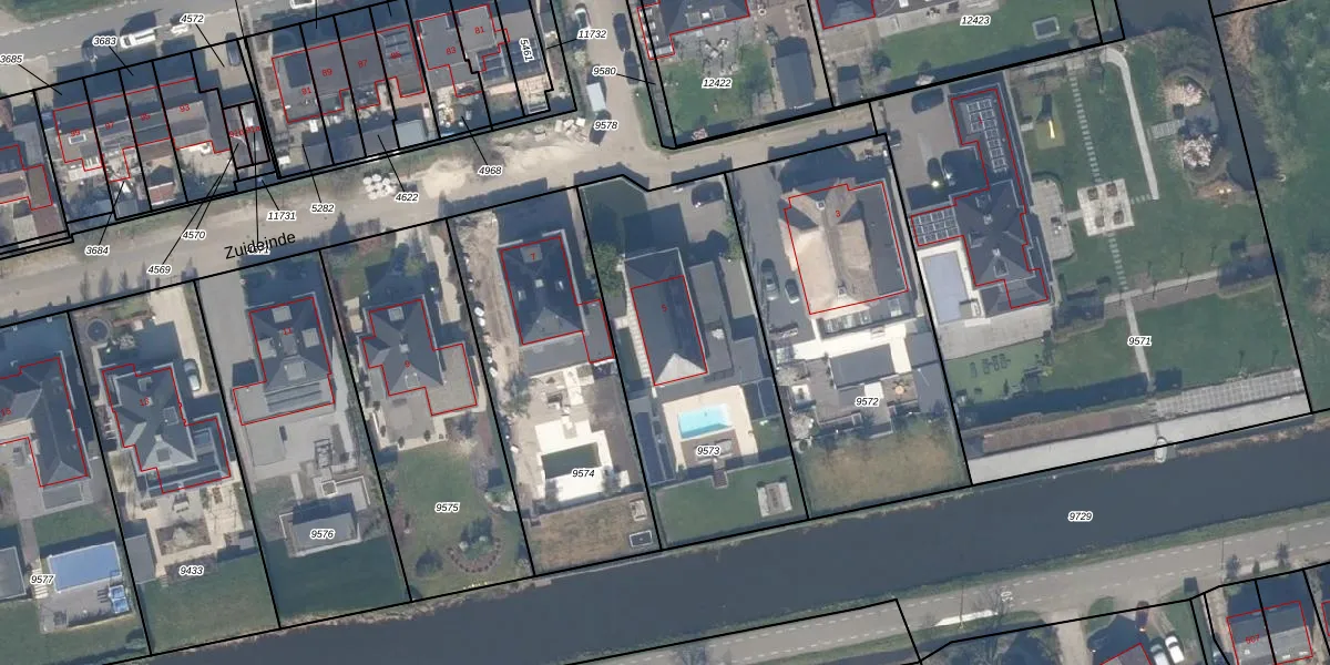 Zuideinde 5 is gelegen op kadastraal perceel BKL01B9573. Deze kadastrale aanduiding is uniek en wordt gebruikt door het Kadaster om eigendomsrechten en andere zakelijke rechten vast te leggen. Het perceel maakt onderdeel uit van de kadastrale gemeente Berkel en Rodenrijs.
