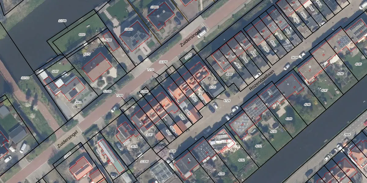Gebruik de zoekbalk of klik op een perceel voor informatie over de adressen binnen dit perceel.
