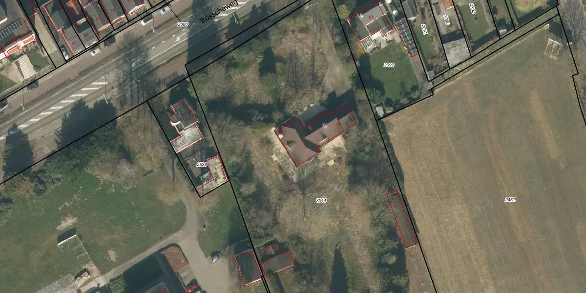 Het perceel waarop Bosscheweg 53-c staat heeft een oppervlakte van 5638 m². Dit is een zeer groot perceel. De perceeloppervlakte wordt geregistreerd door het Kadaster. Gedetailleerde informatie over de maten van dit perceel kunt u vinden in het rapport Kadastrale kaart met maatvoering van Bosscheweg 53-c.