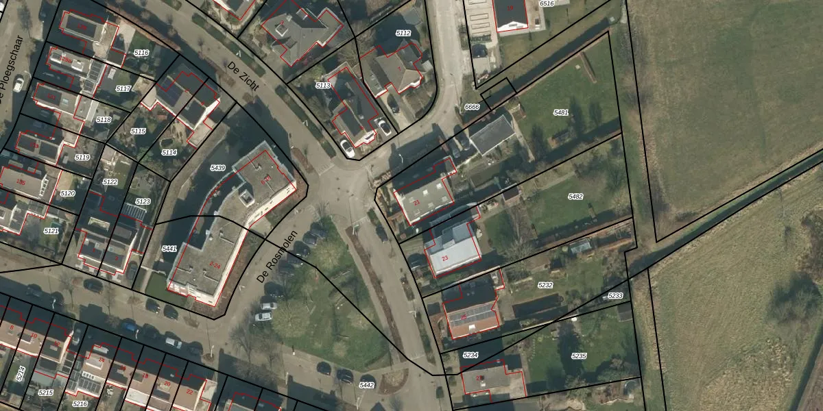 Het perceel waarop De Zicht 21 staat heeft een oppervlakte van 1208 m². Dit is een zeer groot perceel. De perceeloppervlakte wordt geregistreerd door het Kadaster. Gedetailleerde informatie over de maten van dit perceel kunt u vinden in het rapport Kadastrale kaart met maatvoering van De Zicht 21.