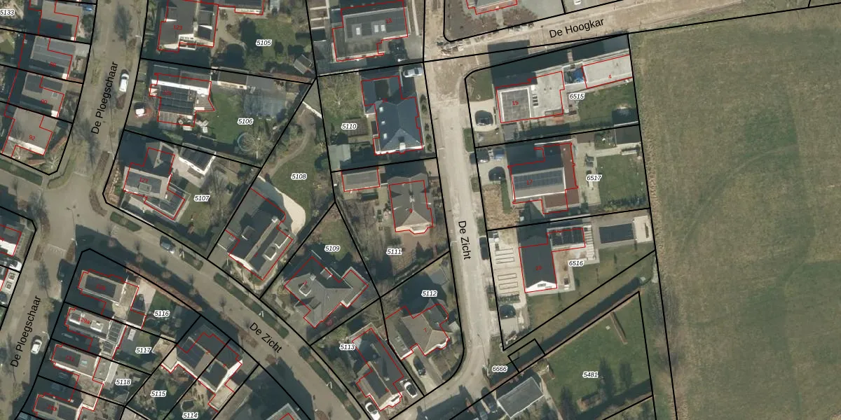 Het perceel waarop De Zicht 9 staat heeft een oppervlakte van 625 m². Dit is een groot perceel. De perceeloppervlakte wordt geregistreerd door het Kadaster. Gedetailleerde informatie over de maten van dit perceel kunt u vinden in het rapport Kadastrale kaart met maatvoering van De Zicht 9.