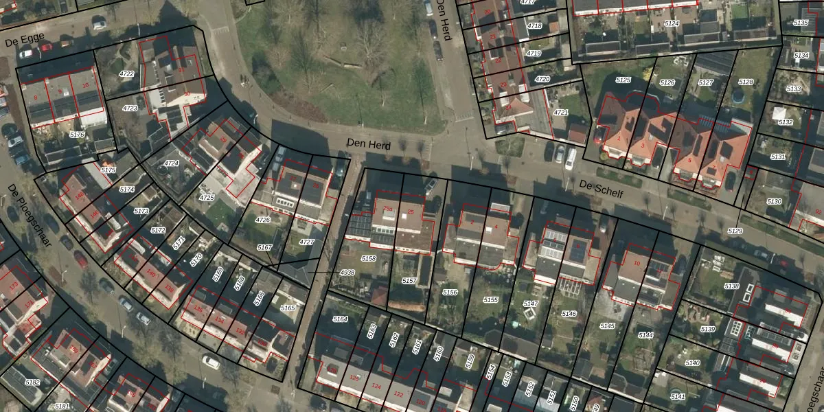 Het perceel waarop Den Herd 25 staat heeft een oppervlakte van 358 m². Dit is een groot perceel. De perceeloppervlakte wordt geregistreerd door het Kadaster. Gedetailleerde informatie over de maten van dit perceel kunt u vinden in het rapport Kadastrale kaart met maatvoering van Den Herd 25.