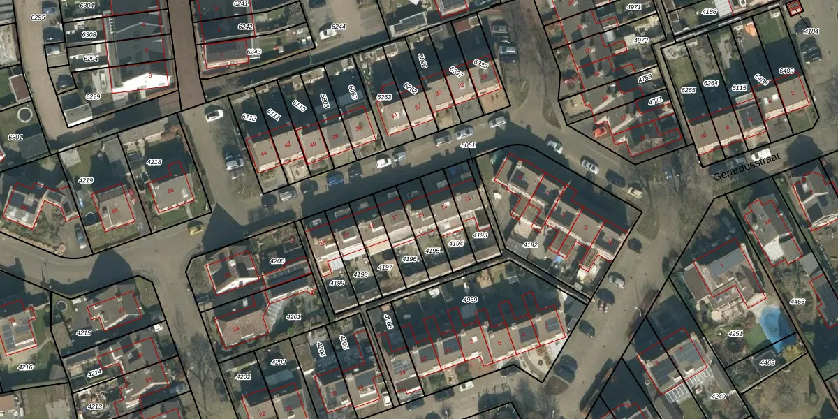 Gerardusstraat 15 is gelegen op kadastraal perceel BKL04B4195. Deze kadastrale aanduiding is uniek en wordt gebruikt door het Kadaster om eigendomsrechten en andere zakelijke rechten vast te leggen. Het perceel maakt onderdeel uit van de kadastrale gemeente Berkel.
