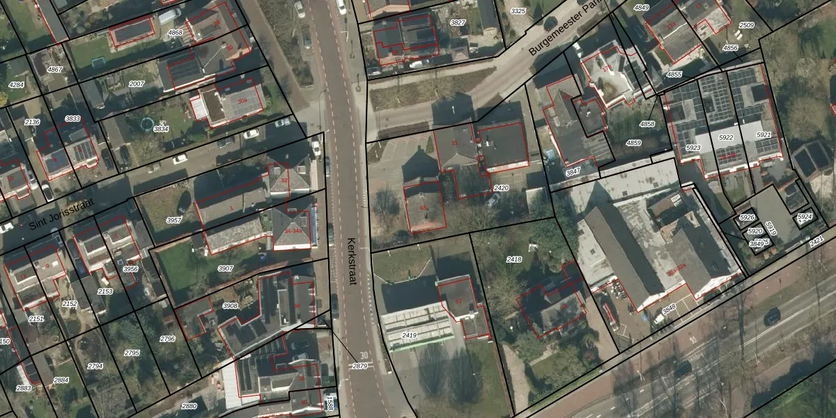 Kerkstraat 65 is gelegen op kadastraal perceel BKL04A2420. Deze kadastrale aanduiding is uniek en wordt gebruikt door het Kadaster om eigendomsrechten en andere zakelijke rechten vast te leggen. Het perceel maakt onderdeel uit van de kadastrale gemeente Berkel.