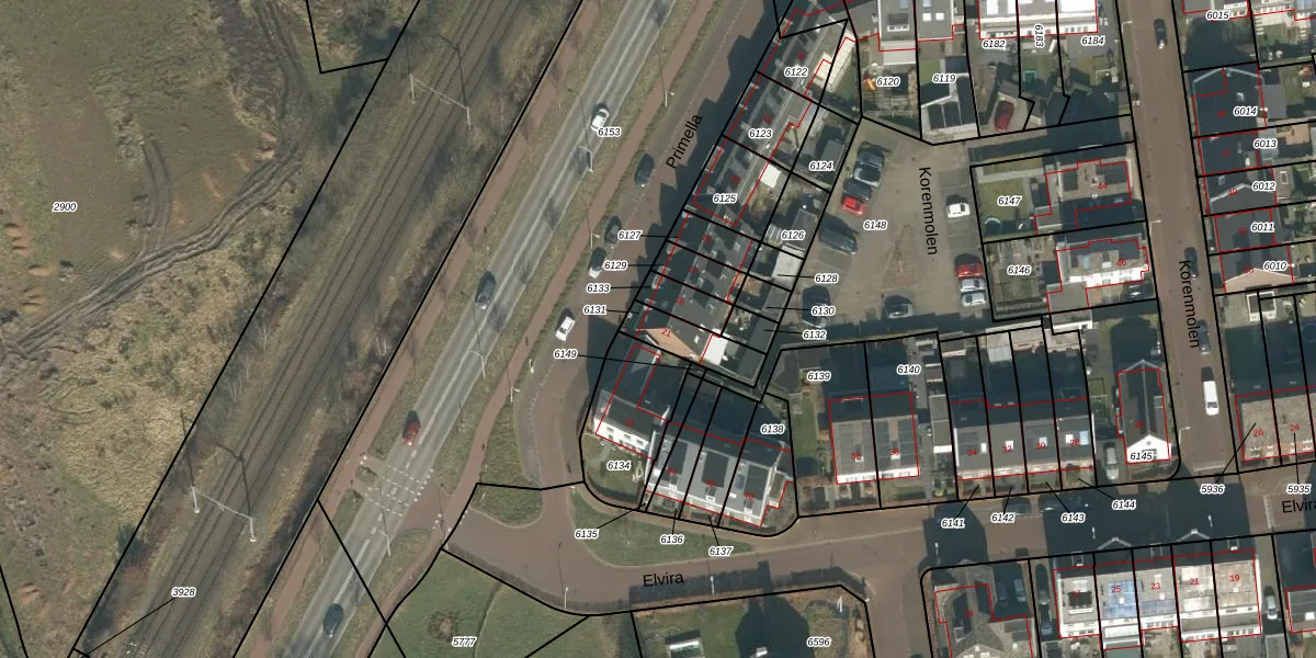 Het perceel waarop Primella 21 staat heeft een oppervlakte van 119 m². Dit is een middelgroot perceel. De perceeloppervlakte wordt geregistreerd door het Kadaster. Gedetailleerde informatie over de maten van dit perceel kunt u vinden in het rapport Kadastrale kaart met maatvoering van Primella 21.