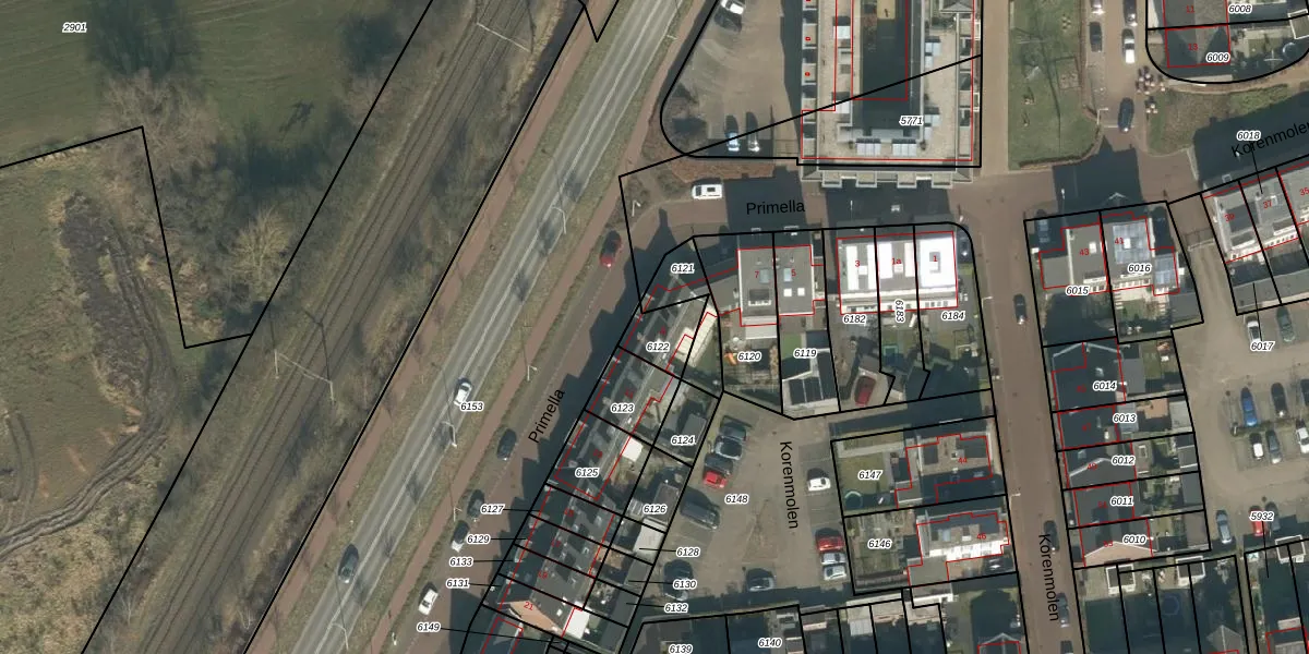 Het perceel waarop Primella 9 staat heeft een oppervlakte van 98 m². Dit is een klein perceel. De perceeloppervlakte wordt geregistreerd door het Kadaster. Gedetailleerde informatie over de maten van dit perceel kunt u vinden in het rapport Kadastrale kaart met maatvoering van Primella 9.