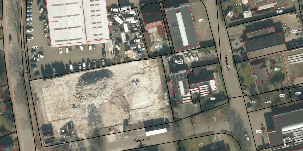 Het perceel waarop Rhijnkant 11-29 staat heeft een oppervlakte van 3980 m². Dit is een zeer groot perceel. De perceeloppervlakte wordt geregistreerd door het Kadaster. Gedetailleerde informatie over de maten van dit perceel kunt u vinden in het rapport Kadastrale kaart met maatvoering van Rhijnkant 11-29.