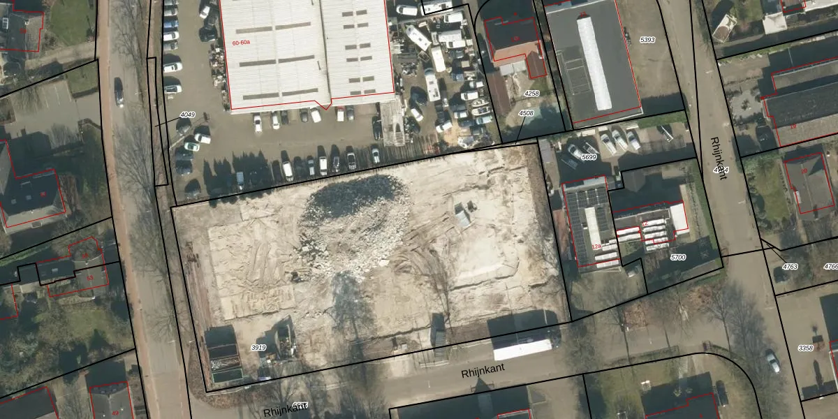 Het perceel waarop Rhijnkant 11-25 staat heeft een oppervlakte van 3980 m². Dit is een zeer groot perceel. De perceeloppervlakte wordt geregistreerd door het Kadaster. Gedetailleerde informatie over de maten van dit perceel kunt u vinden in het rapport Kadastrale kaart met maatvoering van Rhijnkant 11-25.