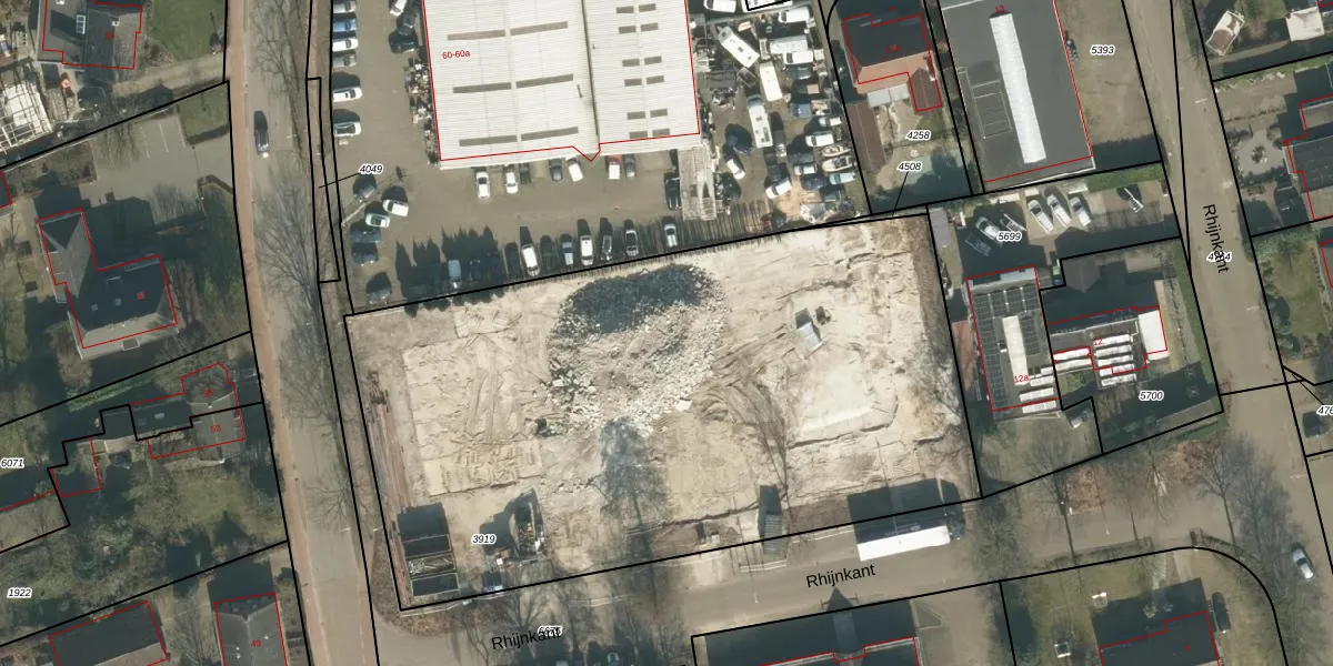 Het perceel waarop Rhijnkant 11-23 staat heeft een oppervlakte van 3980 m². Dit is een zeer groot perceel. De perceeloppervlakte wordt geregistreerd door het Kadaster. Gedetailleerde informatie over de maten van dit perceel kunt u vinden in het rapport Kadastrale kaart met maatvoering van Rhijnkant 11-23.