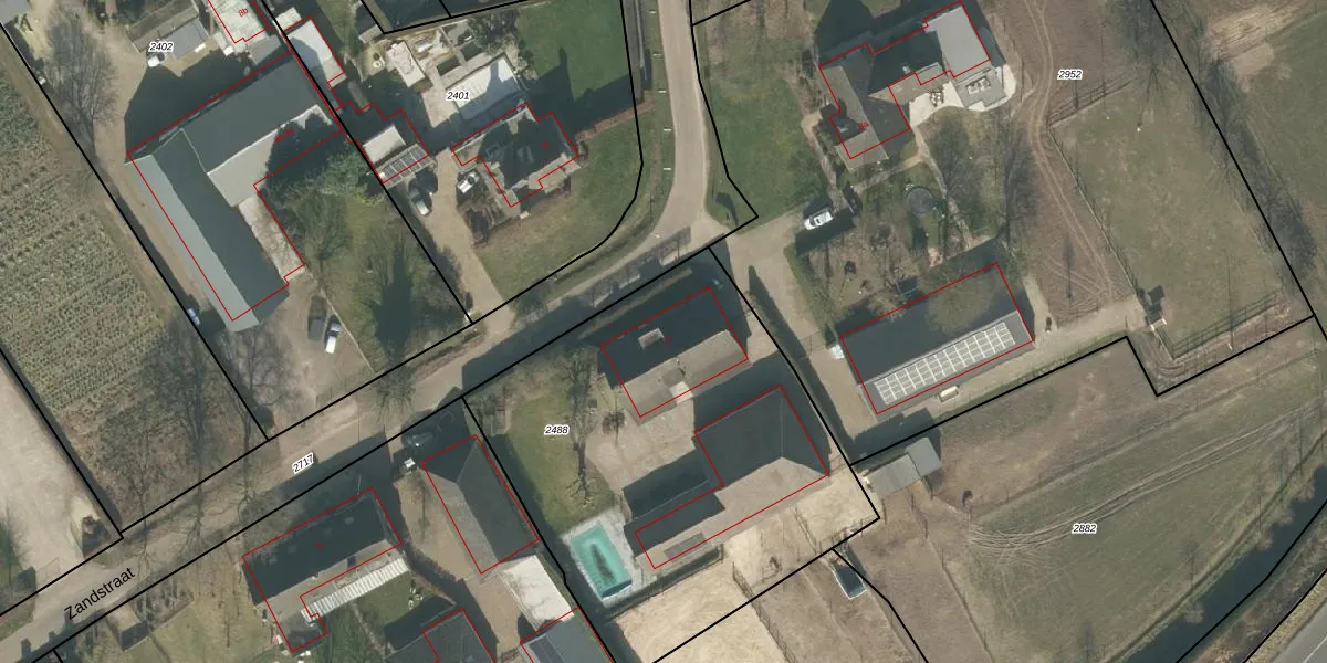 Het perceel waarop Zandstraat 3 staat heeft een oppervlakte van 2163 m². Dit is een zeer groot perceel. De perceeloppervlakte wordt geregistreerd door het Kadaster. Gedetailleerde informatie over de maten van dit perceel kunt u vinden in het rapport Kadastrale kaart met maatvoering van Zandstraat 3.