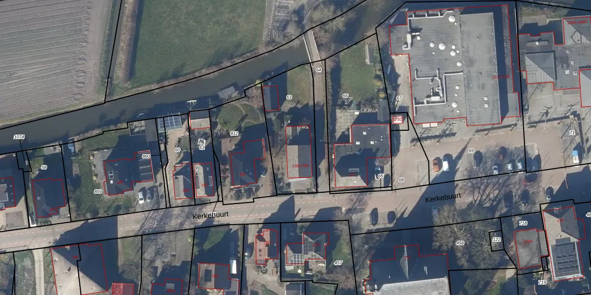 Het perceel waarop Kerkebuurt 178 staat heeft een oppervlakte van 660 m². Dit is een groot perceel. De perceeloppervlakte wordt geregistreerd door het Kadaster. Gedetailleerde informatie over de maten van dit perceel kunt u vinden in het rapport Kadastrale kaart met maatvoering van Kerkebuurt 178.