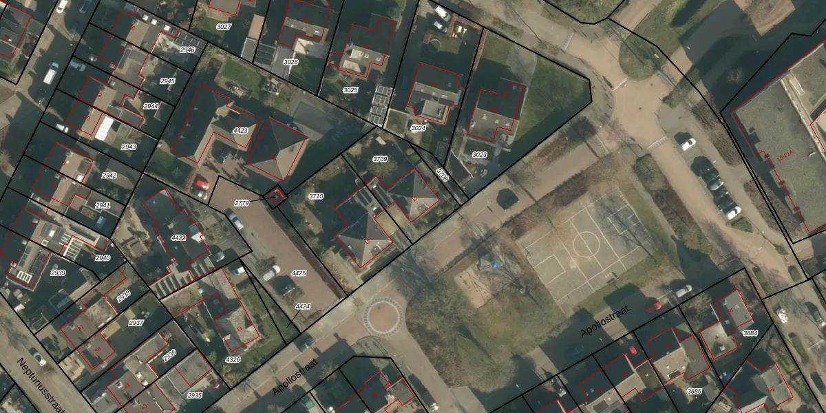 Het perceel waarop Apollostraat 17 staat heeft een oppervlakte van 401 m². Dit is een groot perceel. De perceeloppervlakte wordt geregistreerd door het Kadaster. Gedetailleerde informatie over de maten van dit perceel kunt u vinden in het rapport Kadastrale kaart met maatvoering van Apollostraat 17.