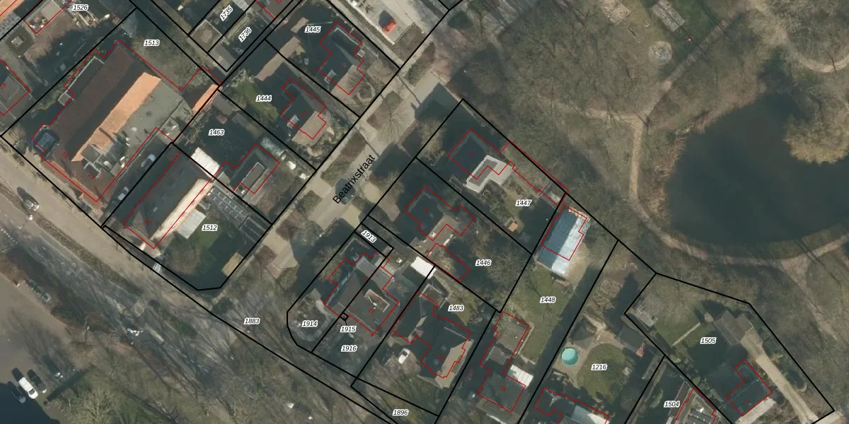 Het perceel waarop Beatrixstraat 4 staat heeft een oppervlakte van 619 m². Dit is een groot perceel. De perceeloppervlakte wordt geregistreerd door het Kadaster. Gedetailleerde informatie over de maten van dit perceel kunt u vinden in het rapport Kadastrale kaart met maatvoering van Beatrixstraat 4.