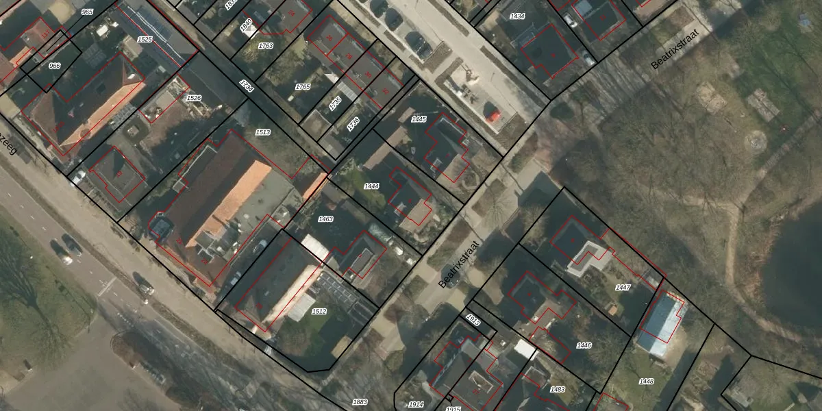 Het perceel waarop Beatrixstraat 5 staat heeft een oppervlakte van 472 m². Dit is een groot perceel. De perceeloppervlakte wordt geregistreerd door het Kadaster. Gedetailleerde informatie over de maten van dit perceel kunt u vinden in het rapport Kadastrale kaart met maatvoering van Beatrixstraat 5.