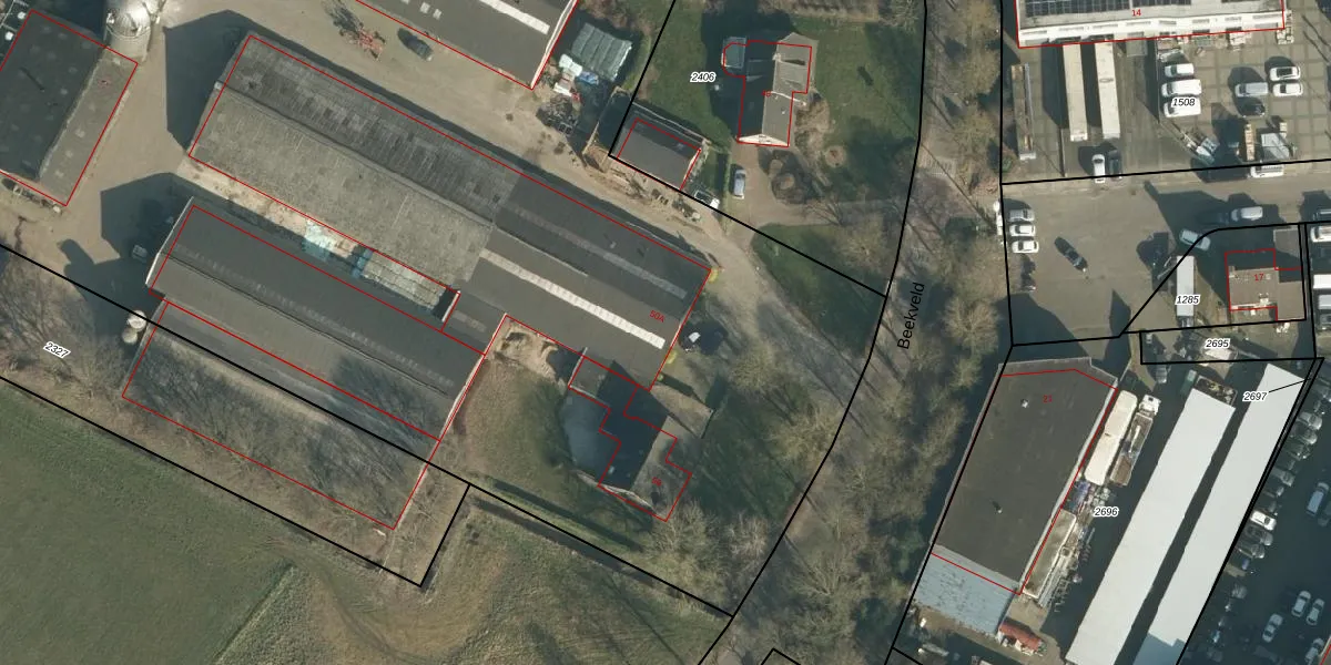 Het perceel waarop Beekveld 50-A staat heeft een oppervlakte van 3,5 ha. Dit is een zeer groot perceel. De perceeloppervlakte wordt geregistreerd door het Kadaster. Gedetailleerde informatie over de maten van dit perceel kunt u vinden in het rapport Kadastrale kaart met maatvoering van Beekveld 50-A.