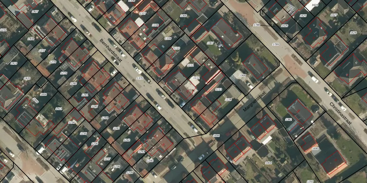 Het perceel waarop Bernhardstraat 23 staat heeft een oppervlakte van 285 m². Dit is een middelgroot perceel. De perceeloppervlakte wordt geregistreerd door het Kadaster. Gedetailleerde informatie over de maten van dit perceel kunt u vinden in het rapport Kadastrale kaart met maatvoering van Bernhardstraat 23.