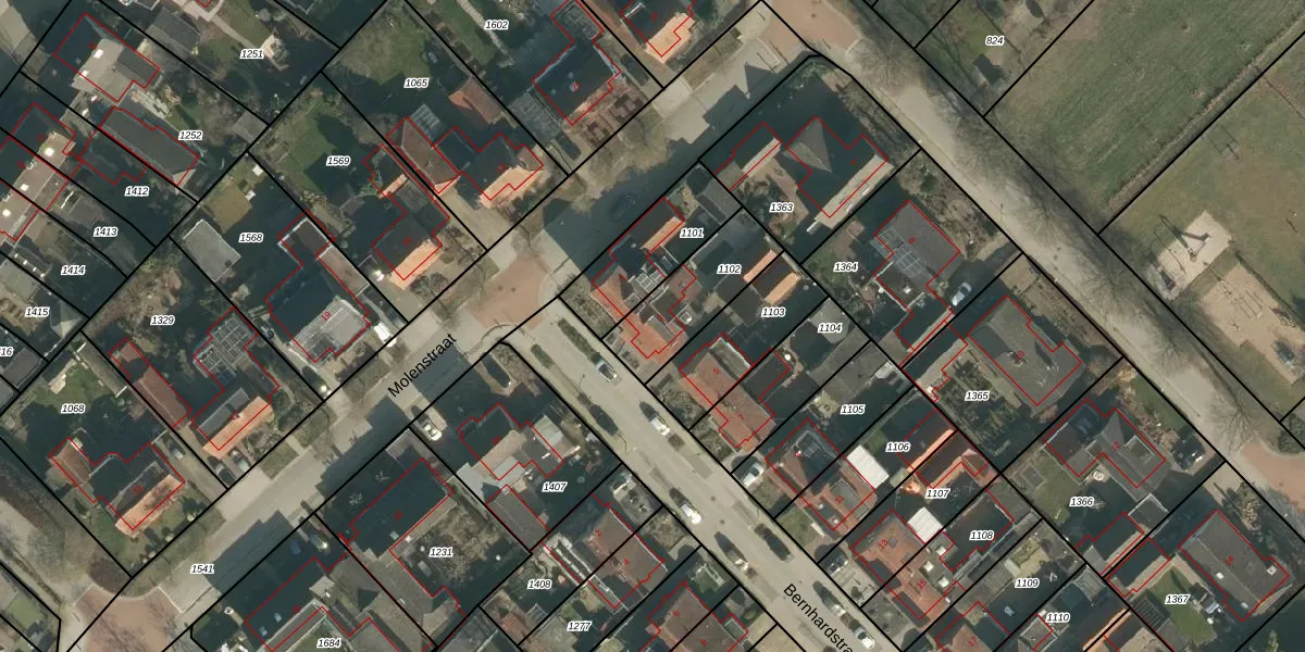 Het perceel waarop Bernhardstraat 3 staat heeft een oppervlakte van 285 m². Dit is een middelgroot perceel. De perceeloppervlakte wordt geregistreerd door het Kadaster. Gedetailleerde informatie over de maten van dit perceel kunt u vinden in het rapport Kadastrale kaart met maatvoering van Bernhardstraat 3.