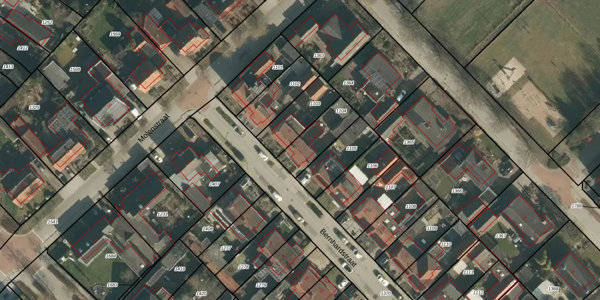 Het perceel waarop Bernhardstraat 7 staat heeft een oppervlakte van 285 m². Dit is een middelgroot perceel. De perceeloppervlakte wordt geregistreerd door het Kadaster. Gedetailleerde informatie over de maten van dit perceel kunt u vinden in het rapport Kadastrale kaart met maatvoering van Bernhardstraat 7.
