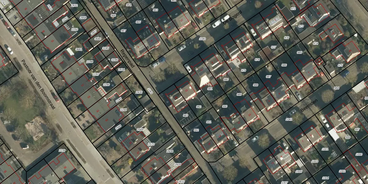 Het perceel waarop De Bogerd 13 staat heeft een oppervlakte van 222 m². Dit is een middelgroot perceel. De perceeloppervlakte wordt geregistreerd door het Kadaster. Gedetailleerde informatie over de maten van dit perceel kunt u vinden in het rapport Kadastrale kaart met maatvoering van De Bogerd 13.