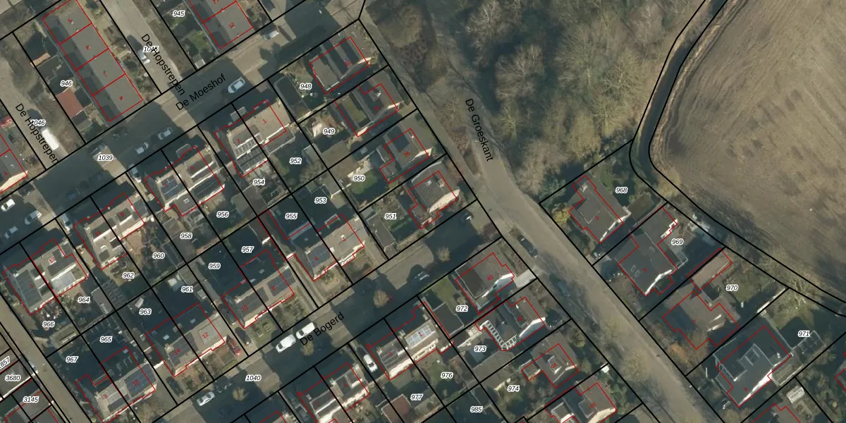 Gebruik de zoekbalk of klik op een perceel voor informatie over de adressen binnen dit perceel.