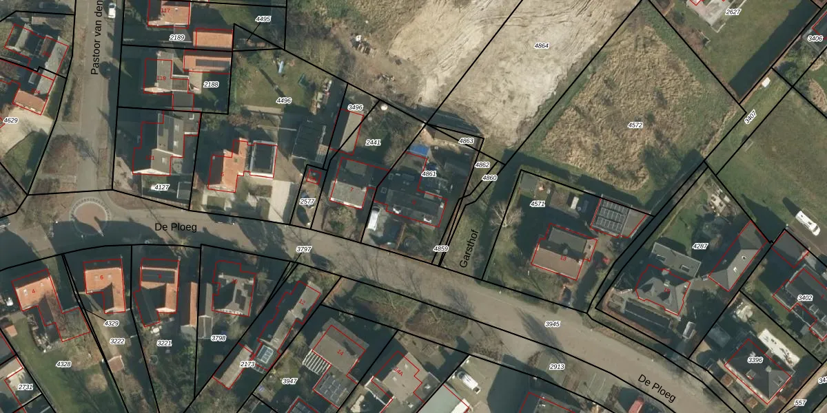 Het perceel waarop De Ploeg 9 staat heeft een oppervlakte van 555 m². Dit is een groot perceel. De perceeloppervlakte wordt geregistreerd door het Kadaster. Gedetailleerde informatie over de maten van dit perceel kunt u vinden in het rapport Kadastrale kaart met maatvoering van De Ploeg 9.