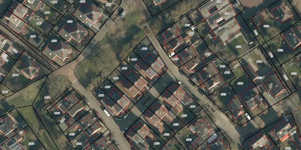 De Rijf 16 is gelegen op kadastraal perceel BLC00H4664. Deze kadastrale aanduiding is uniek en wordt gebruikt door het Kadaster om eigendomsrechten en andere zakelijke rechten vast te leggen. Het perceel maakt onderdeel uit van de kadastrale gemeente Berlicum.