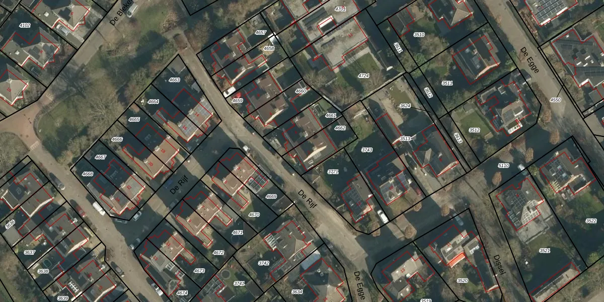 Het perceel waarop De Rijf 2 staat heeft een oppervlakte van 210 m². Dit is een middelgroot perceel. De perceeloppervlakte wordt geregistreerd door het Kadaster. Gedetailleerde informatie over de maten van dit perceel kunt u vinden in het rapport Kadastrale kaart met maatvoering van De Rijf 2.