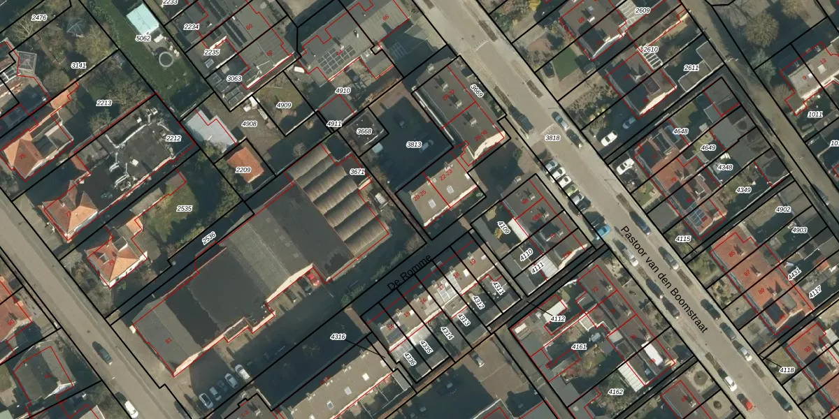 Het perceel waarop De Romme 25 staat heeft een oppervlakte van 566 m². Dit is een groot perceel. De perceeloppervlakte wordt geregistreerd door het Kadaster. Gedetailleerde informatie over de maten van dit perceel kunt u vinden in het rapport Kadastrale kaart met maatvoering van De Romme 25.