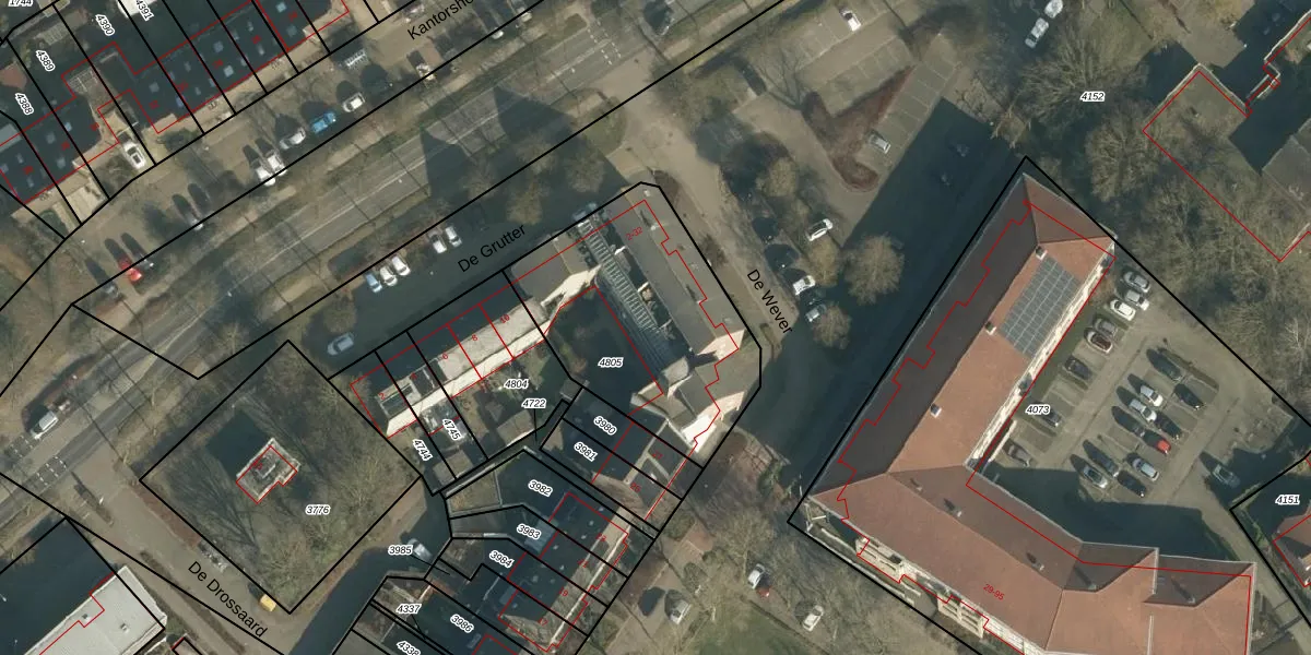 Het perceel waarop De Wever 28 staat heeft een oppervlakte van 957 m². Dit is een groot perceel. De perceeloppervlakte wordt geregistreerd door het Kadaster. Gedetailleerde informatie over de maten van dit perceel kunt u vinden in het rapport Kadastrale kaart met maatvoering van De Wever 28.