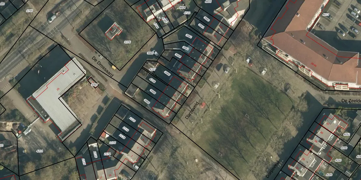 Gebruik de zoekbalk of klik op een perceel voor informatie over de adressen binnen dit perceel.