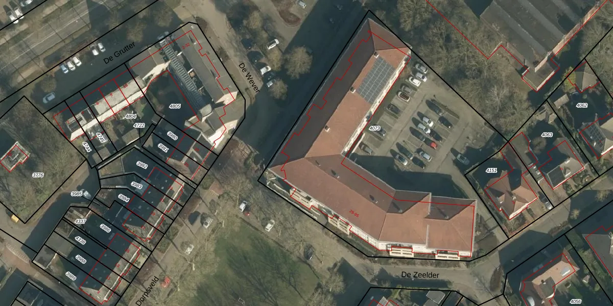 Het perceel waarop Dorpsveld 55 staat heeft een oppervlakte van 3939 m². Dit is een zeer groot perceel. De perceeloppervlakte wordt geregistreerd door het Kadaster. Gedetailleerde informatie over de maten van dit perceel kunt u vinden in het rapport Kadastrale kaart met maatvoering van Dorpsveld 55.
