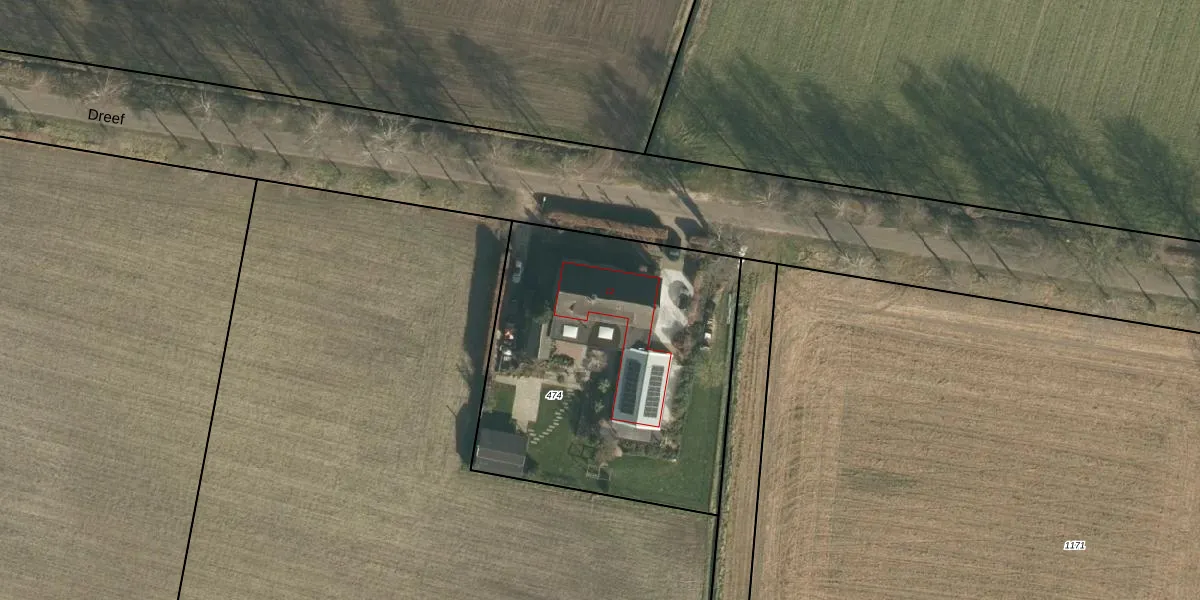 Het perceel waarop Dreef 12 staat heeft een oppervlakte van 1740 m². Dit is een zeer groot perceel. De perceeloppervlakte wordt geregistreerd door het Kadaster. Gedetailleerde informatie over de maten van dit perceel kunt u vinden in het rapport Kadastrale kaart met maatvoering van Dreef 12.