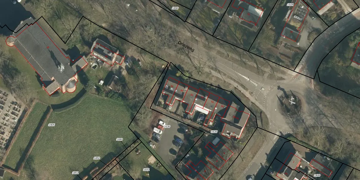Het perceel waarop Driezeeg 48 staat heeft een oppervlakte van 2099 m². Dit is een zeer groot perceel. De perceeloppervlakte wordt geregistreerd door het Kadaster. Gedetailleerde informatie over de maten van dit perceel kunt u vinden in het rapport Kadastrale kaart met maatvoering van Driezeeg 48.