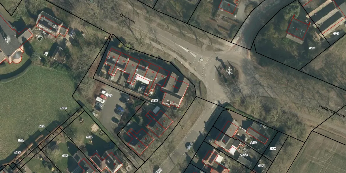 Het perceel waarop Driezeeg 60 staat heeft een oppervlakte van 2099 m². Dit is een zeer groot perceel. De perceeloppervlakte wordt geregistreerd door het Kadaster. Gedetailleerde informatie over de maten van dit perceel kunt u vinden in het rapport Kadastrale kaart met maatvoering van Driezeeg 60.