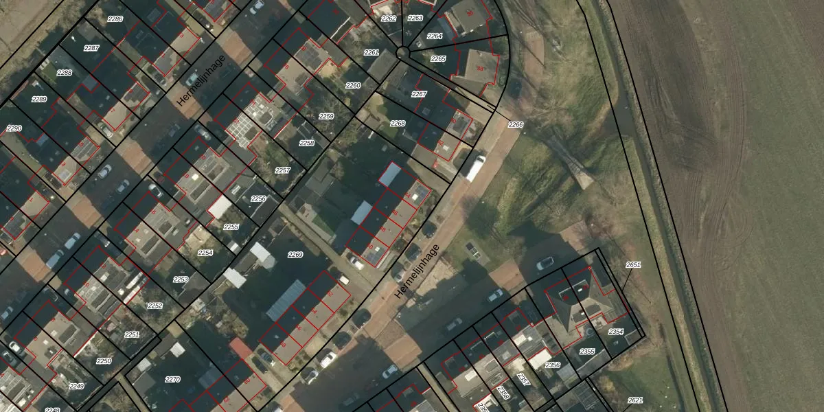 Het perceel waarop Hermelijnhage 44 staat heeft een oppervlakte van 2090 m². Dit is een zeer groot perceel. De perceeloppervlakte wordt geregistreerd door het Kadaster. Gedetailleerde informatie over de maten van dit perceel kunt u vinden in het rapport Kadastrale kaart met maatvoering van Hermelijnhage 44.