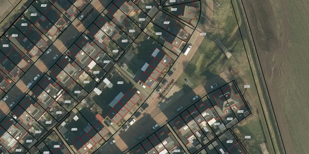 Het perceel waarop Hermelijnhage 48 staat heeft een oppervlakte van 2090 m². Dit is een zeer groot perceel. De perceeloppervlakte wordt geregistreerd door het Kadaster. Gedetailleerde informatie over de maten van dit perceel kunt u vinden in het rapport Kadastrale kaart met maatvoering van Hermelijnhage 48.