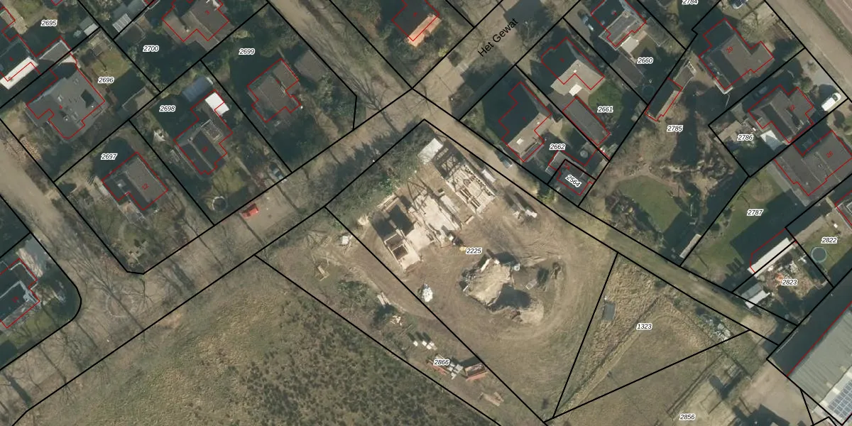 Het perceel waarop Het Gewat 9 staat heeft een oppervlakte van 2330 m². Dit is een zeer groot perceel. De perceeloppervlakte wordt geregistreerd door het Kadaster. Gedetailleerde informatie over de maten van dit perceel kunt u vinden in het rapport Kadastrale kaart met maatvoering van Het Gewat 9.
